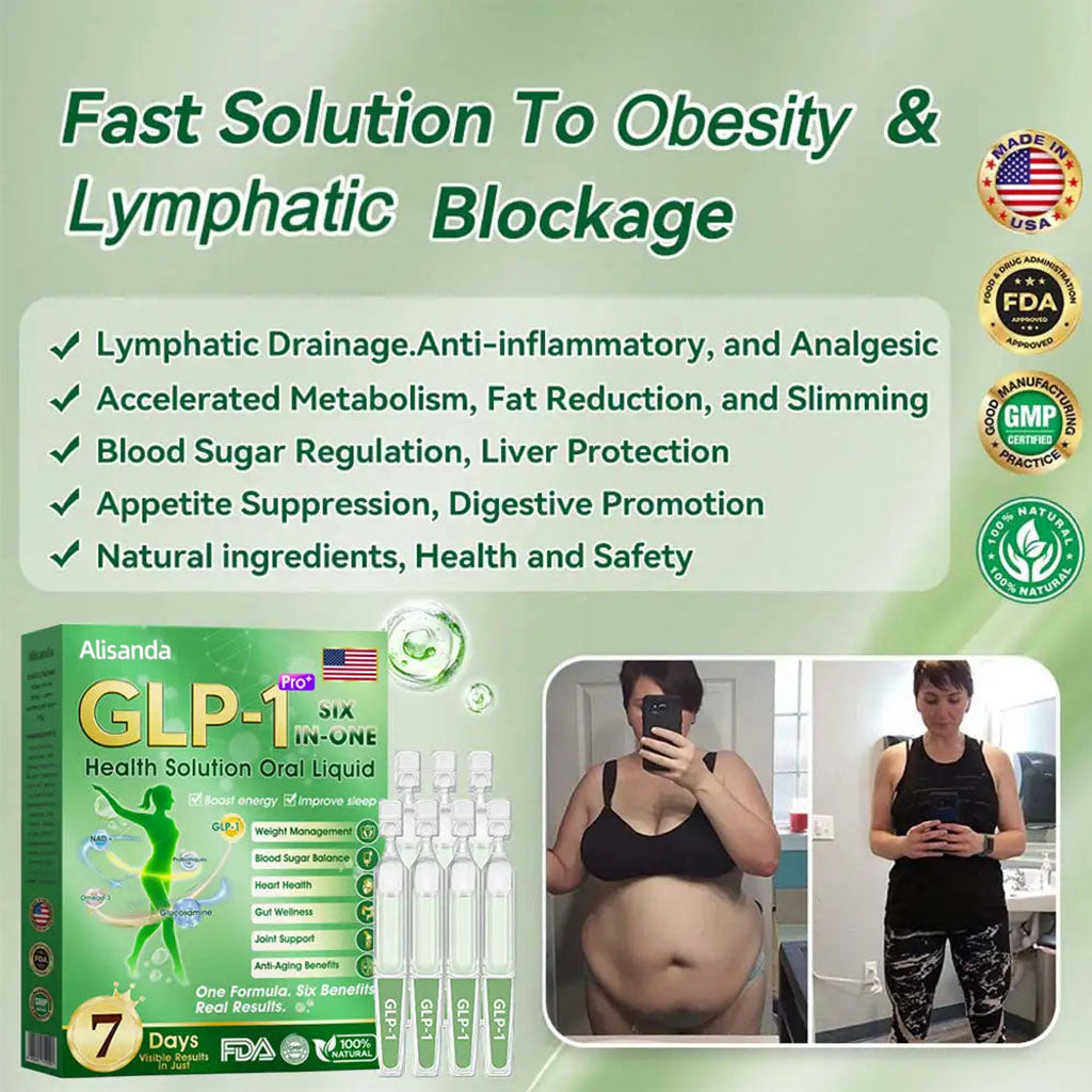 Clinically tested by endocrinologist. Alisanda® GLP-1 Six in One Health Solution Oral Liquid activation can significantly improve obesity and other health issues within just 7 days.
