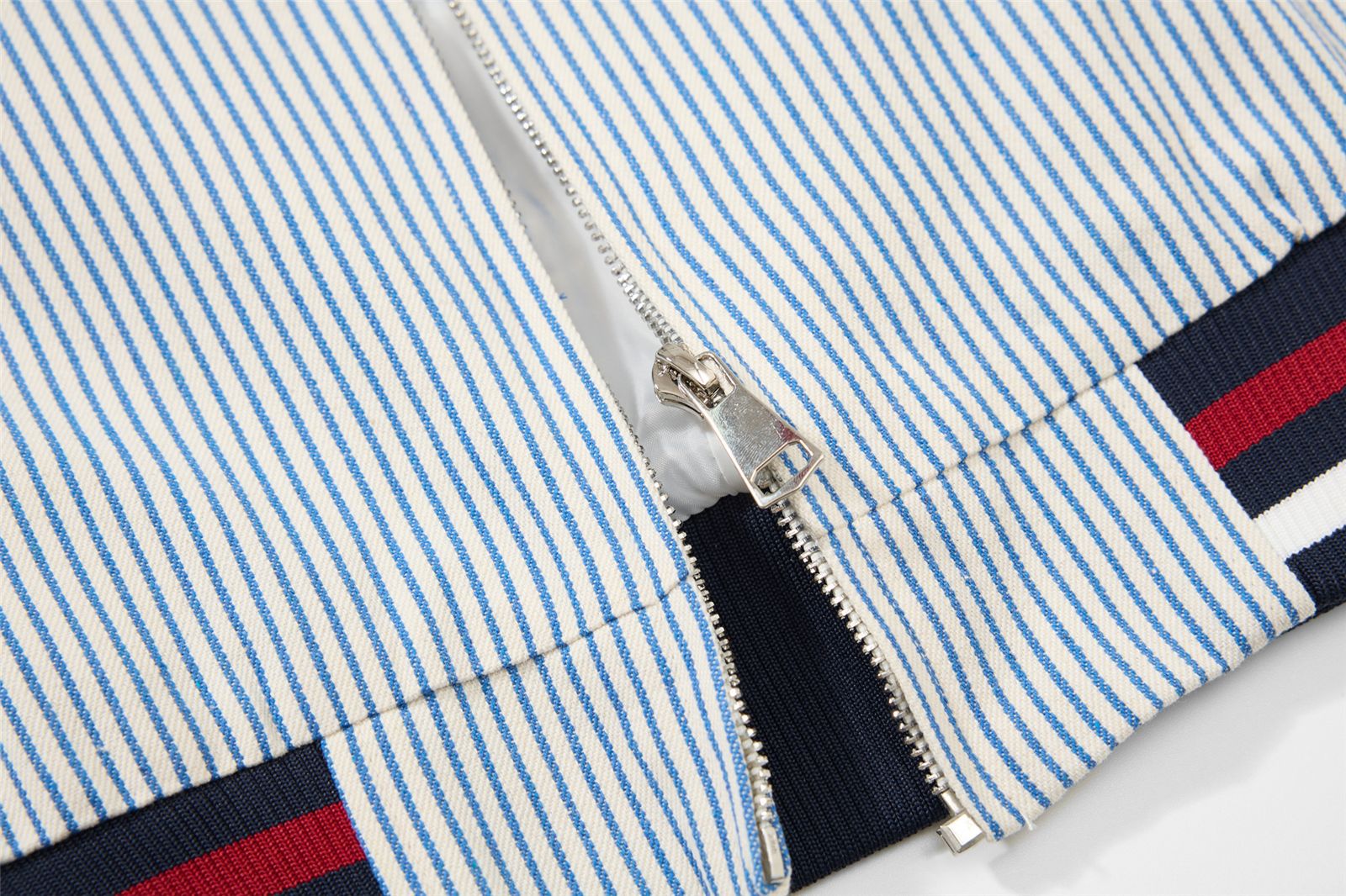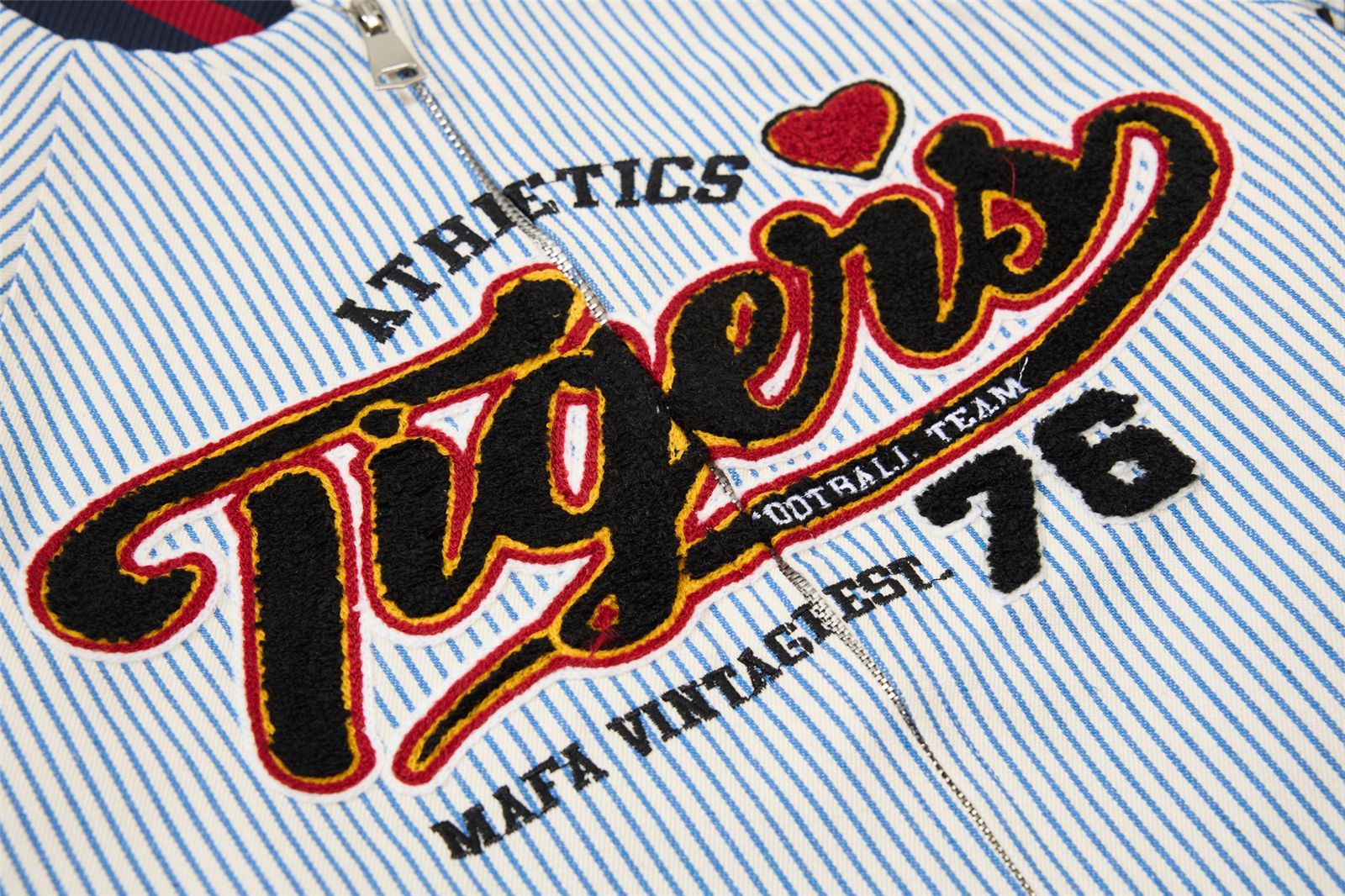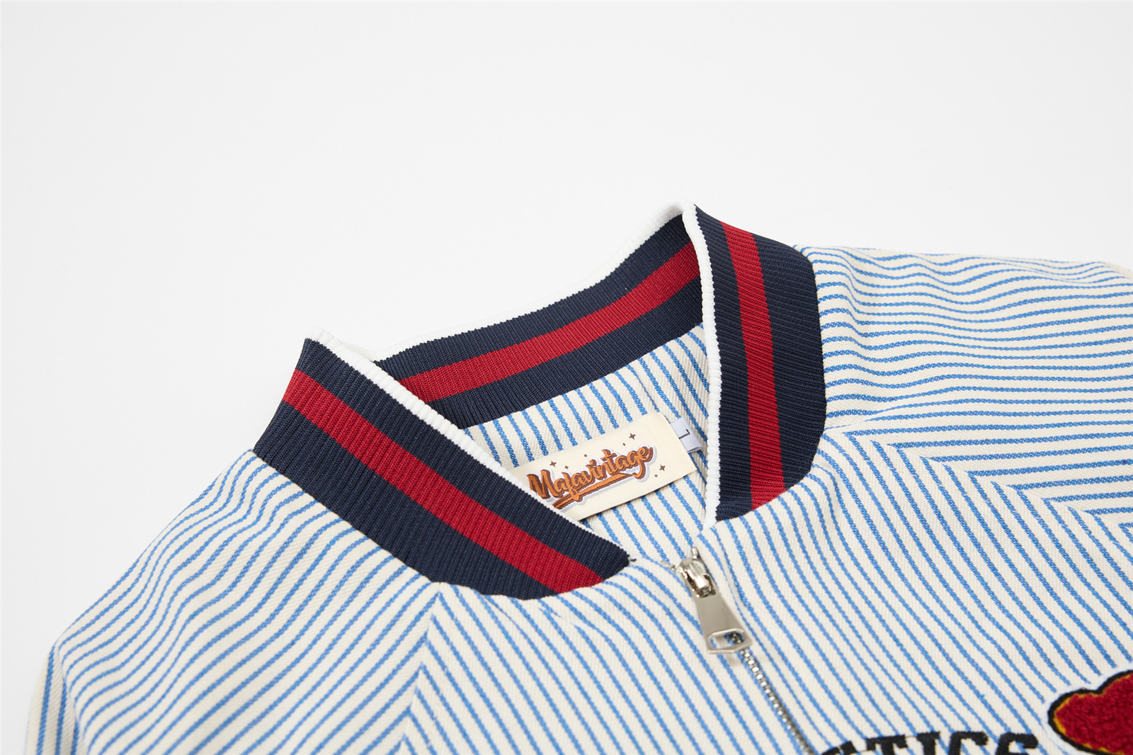 Color-blocked Letter Embroidery Stripe Baseball Jacket Unisex Oversized Casual Trendy Coat